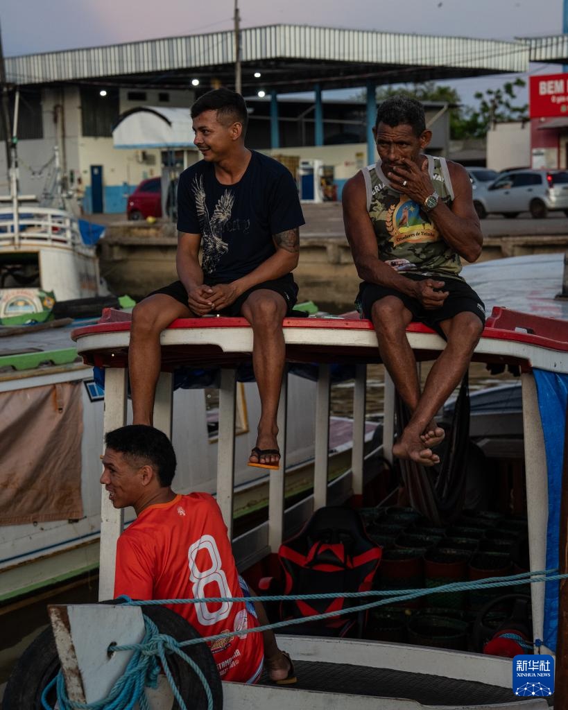 11月8日,在巴西马卡帕市,人们在港口的船只上交谈。新华社记者 王天聪 摄