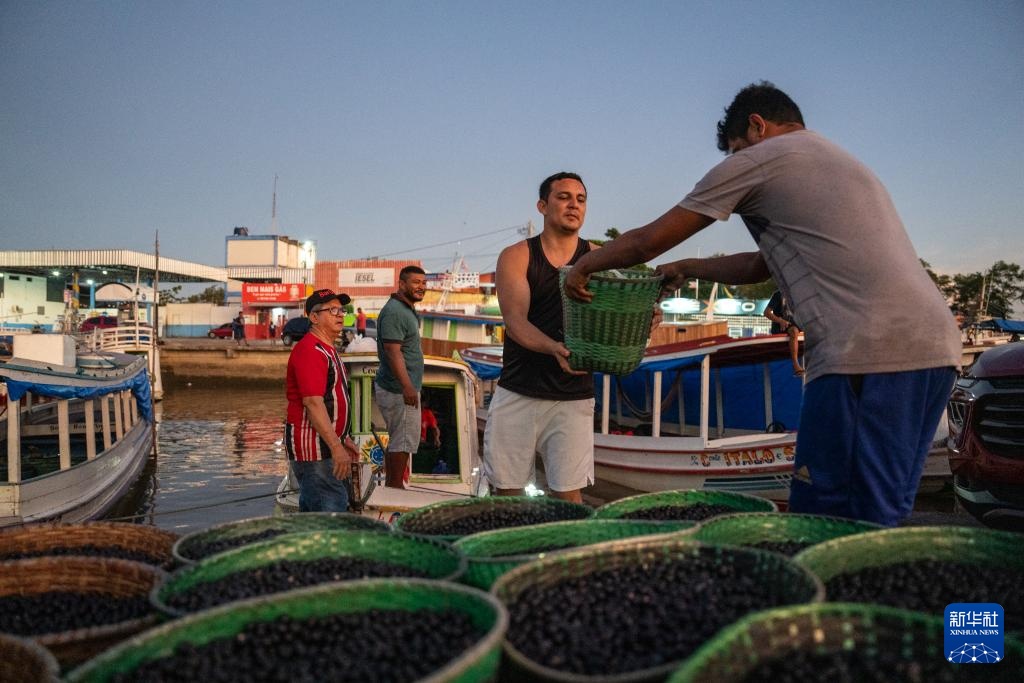 11月8日,在巴西马卡帕市,工人将运抵的阿萨伊果从船只上卸下。新华社记者 王天聪 摄