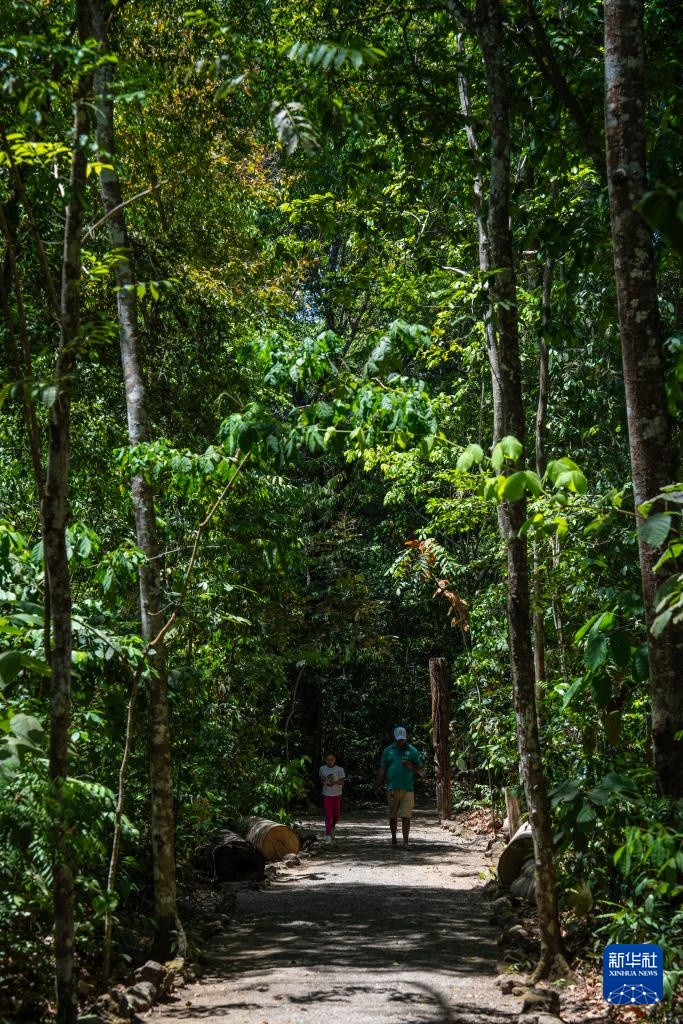 11月9日,在巴西马卡帕市的萨卡卡博物馆,游客在热带雨林步道上漫步。新华社记者 王天聪 摄