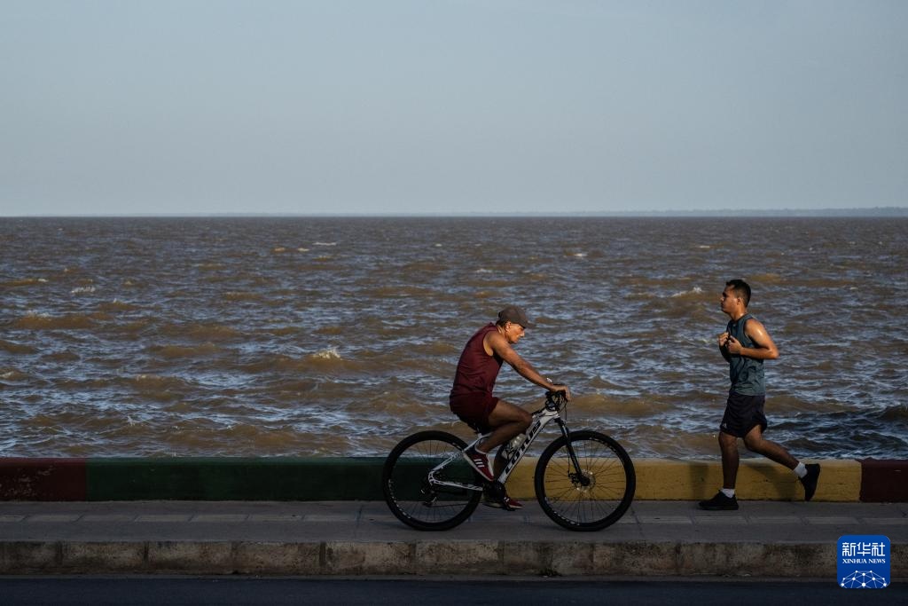 11月9日,在巴西马卡帕市,人们在亚马孙河畔运动。新华社记者 王天聪 摄
