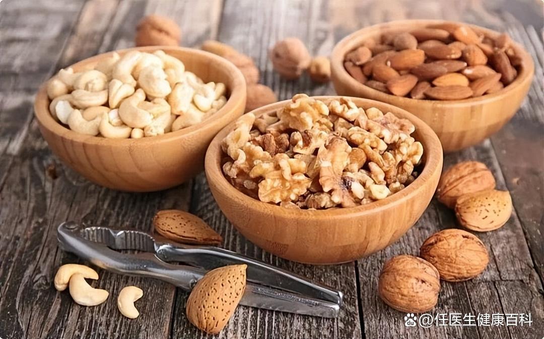第四,坚果如核桃、杏仁,提供健康的不饱和脂肪酸和植物甾醇,帮助竞争性抑制胆固醇吸收。